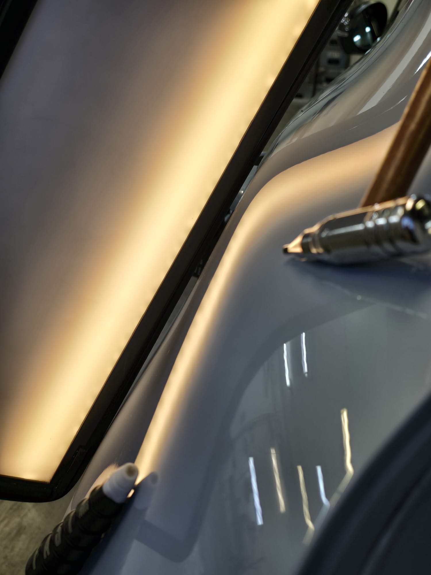 Mit Spezialwerkzeugen wird die Delle sanft und kontrolliert zurückgeformt – von der Rückseite oder durch gezieltes Massieren der Oberfläche. Der Originallack bleibt dabei vollständig erhalten.