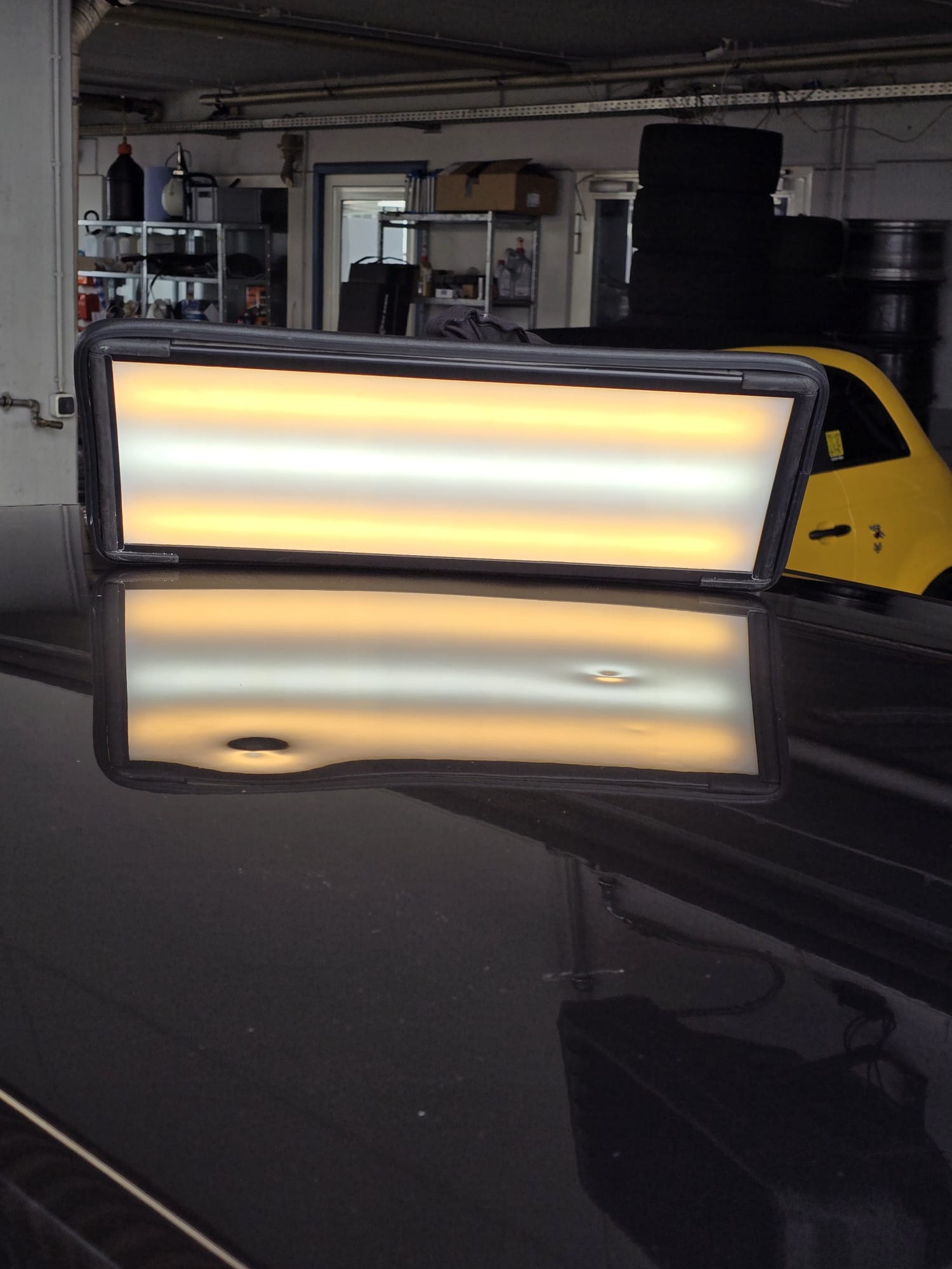 Der Schaden wird mit einem speziellen Reflektionslicht ausgemessen. So lassen sich selbst feinste Dellen sichtbar machen – präzise, verzerrungsfrei und millimetergenau.
